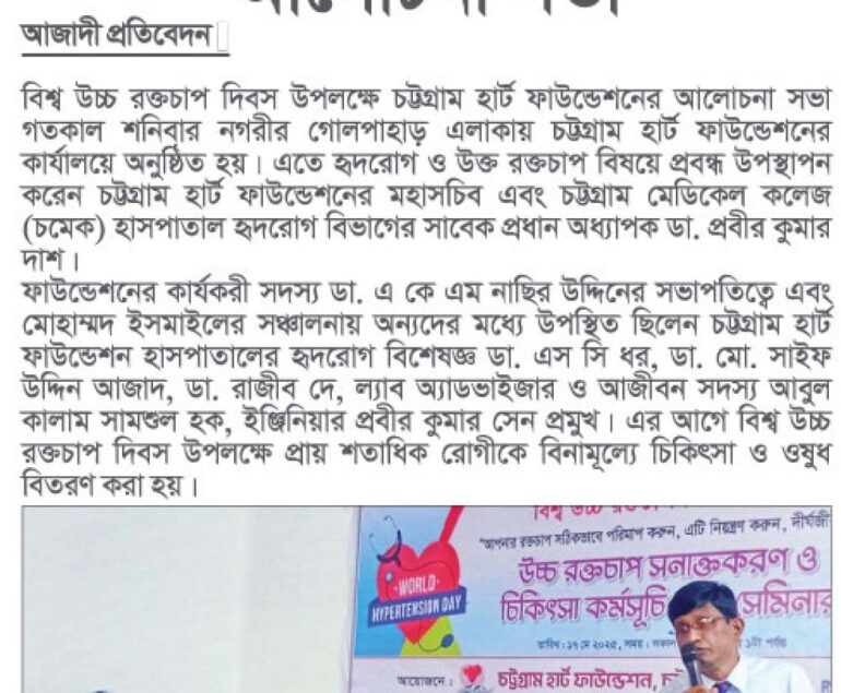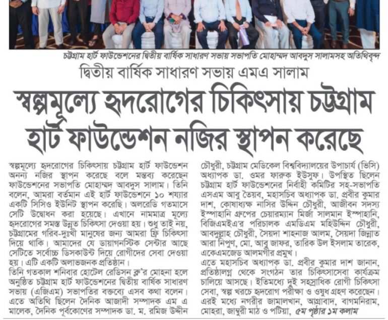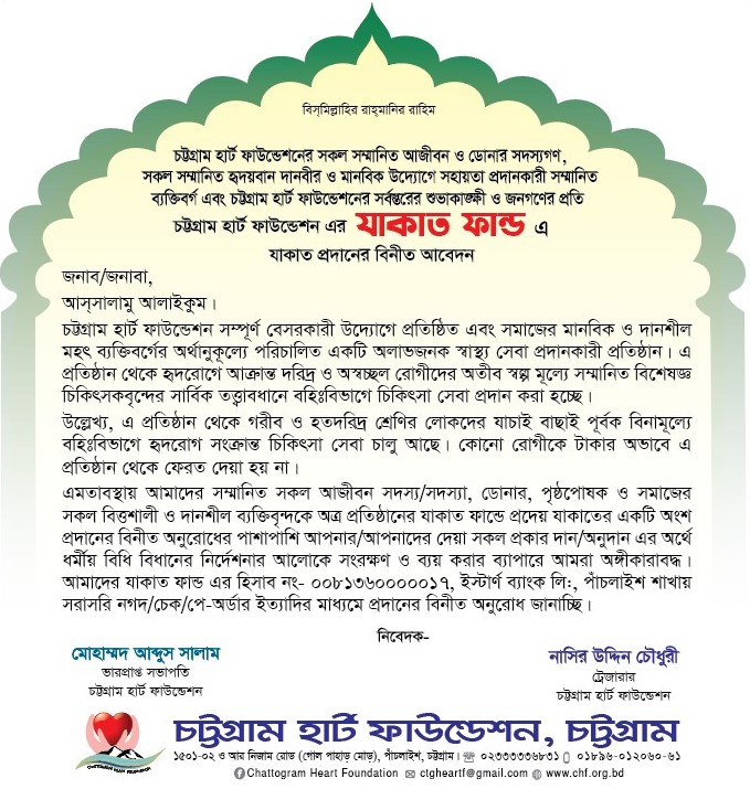 I recently found myself under your care for a cardiac issue. While there, accompanied by my wife, we found that the entire staff at Chattogram Heart Foundation was exceedingly professional and efficient.